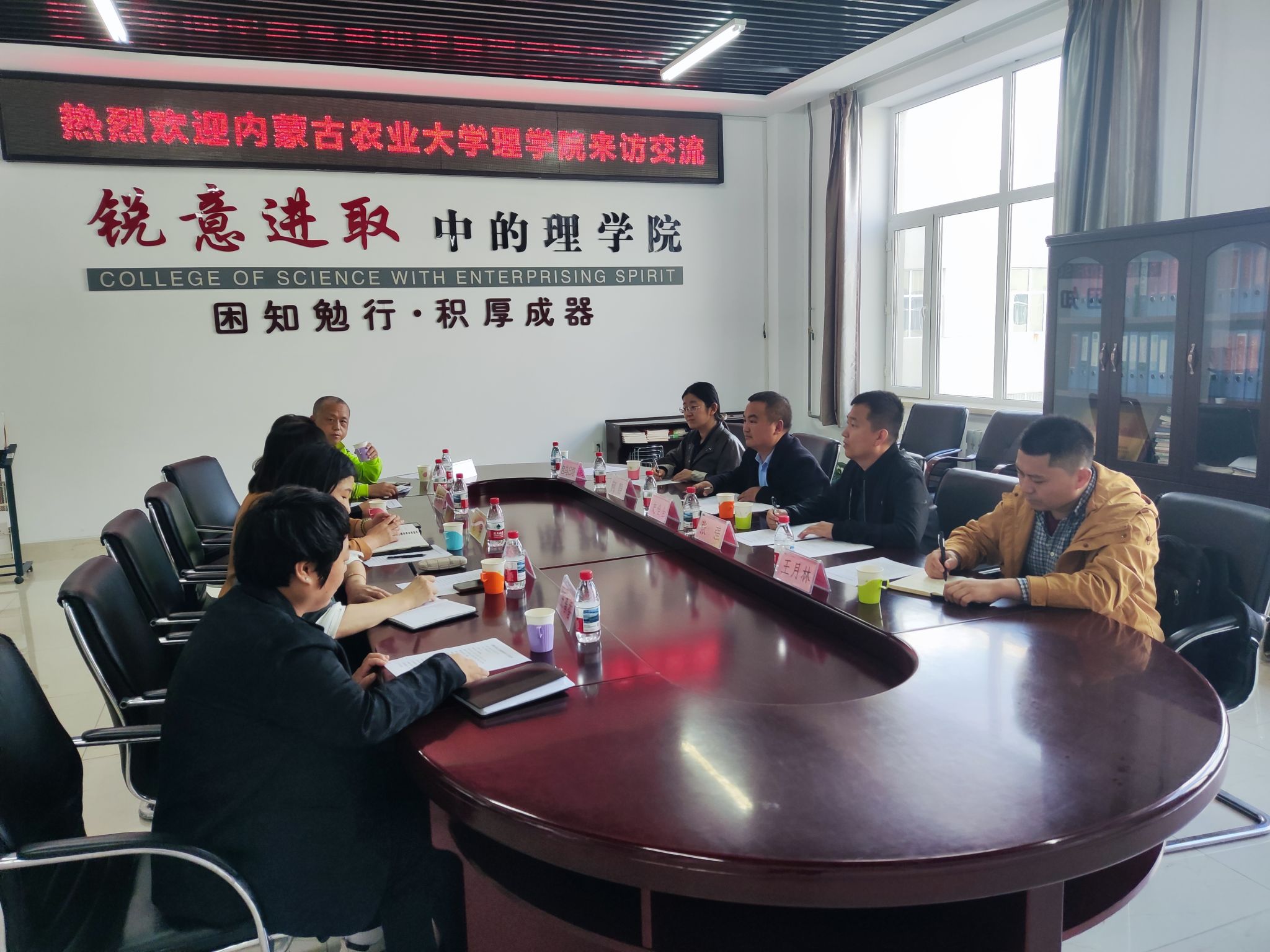 调研团队由物理与电子科学系主任张强、化学化工系主任史全全、化学化工系副主任王月林、物理与电子科学系专业课程教师包乌日塔、教学办公室副主任何静组成。本次调研围绕电子科学与技术、应用化学等专业的课程设置、实践教学、师资建设等内容进行了深入交流。