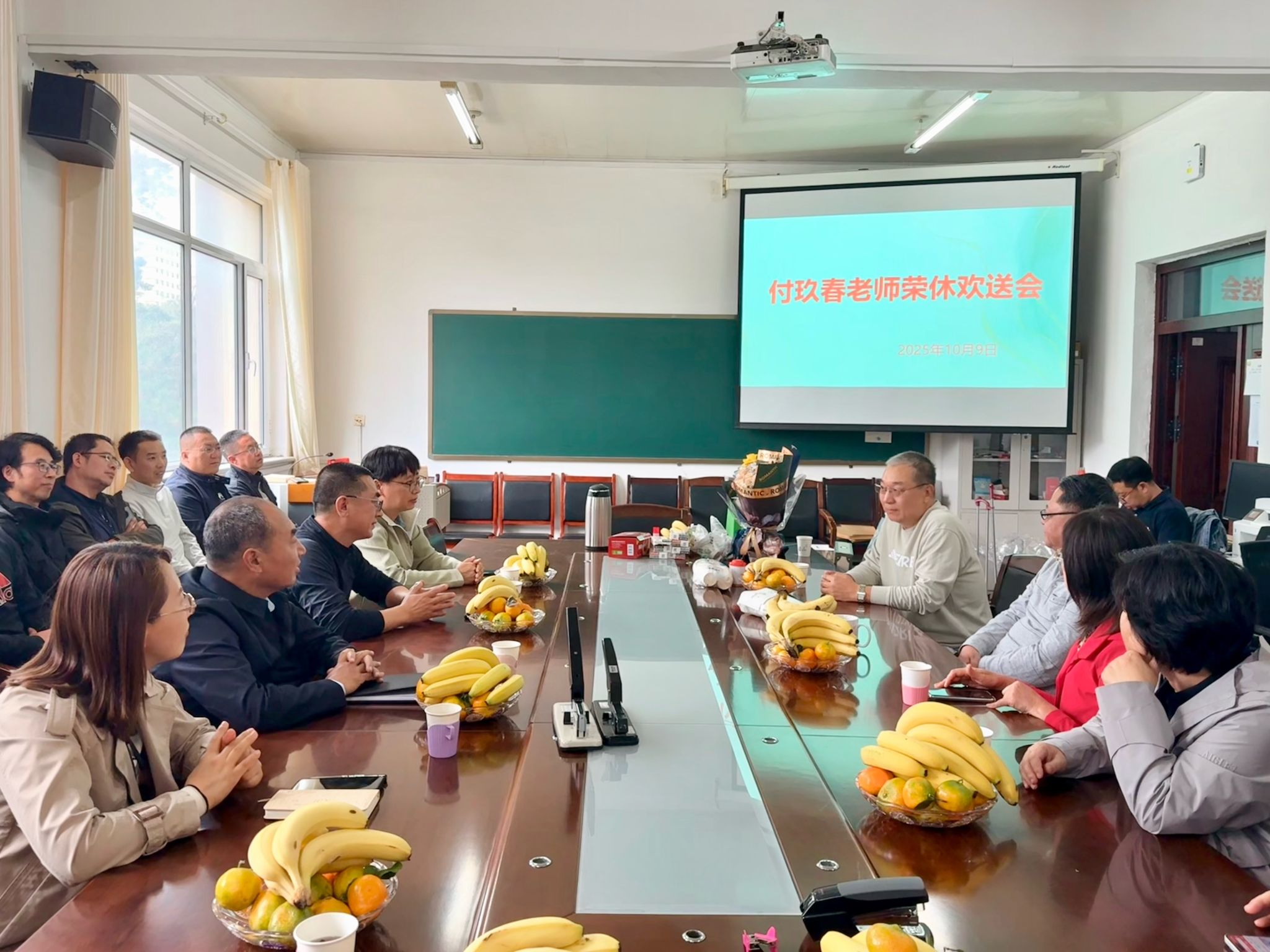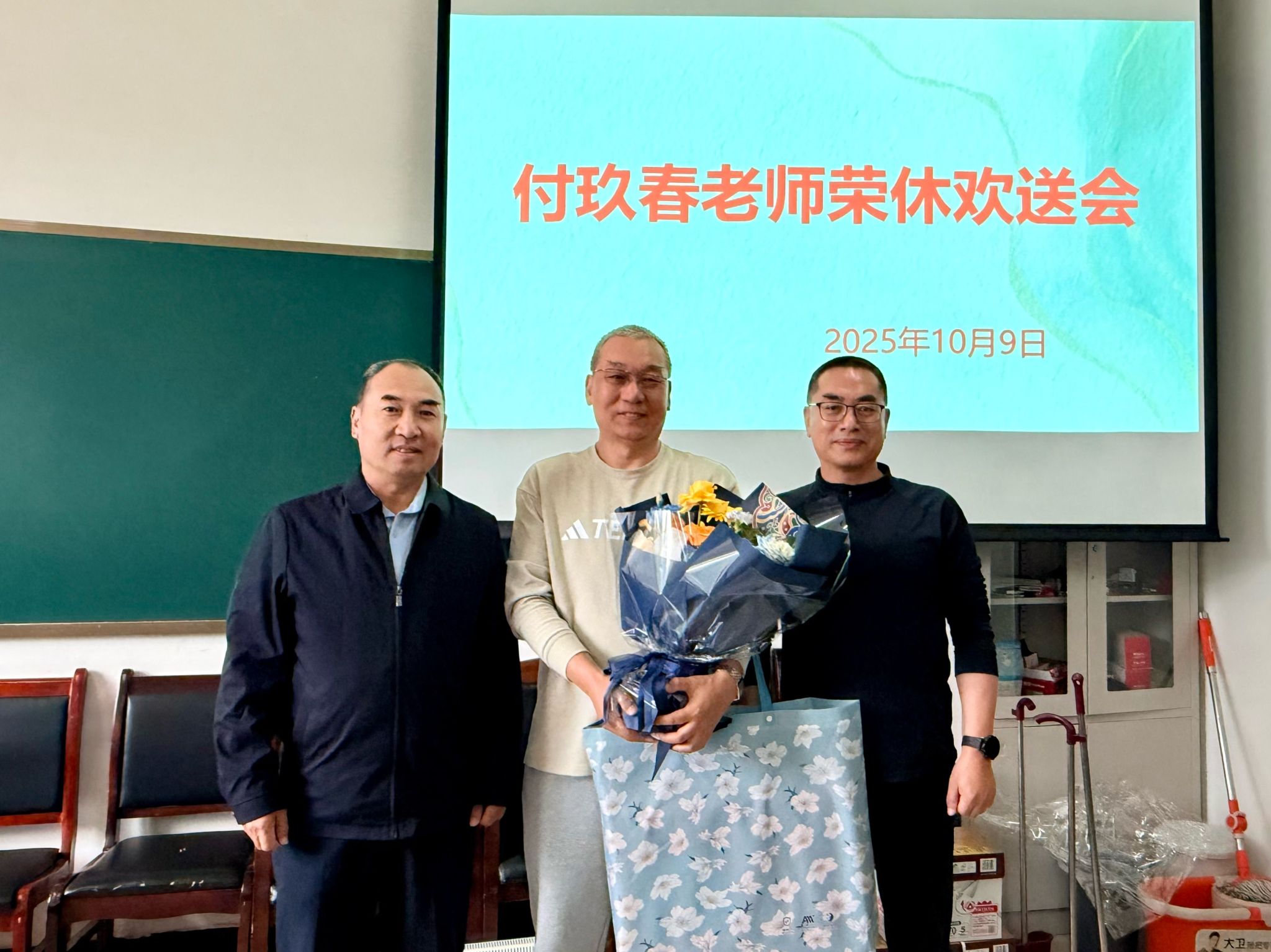 10月9日下午,数学与统计学系在学院215会议室为光荣退休的付玖春老师举行荣休欢送会。活动由系主任刘海军主持,学院领导与全系教师齐聚一堂,共话执教岁月,送上诚挚祝福。