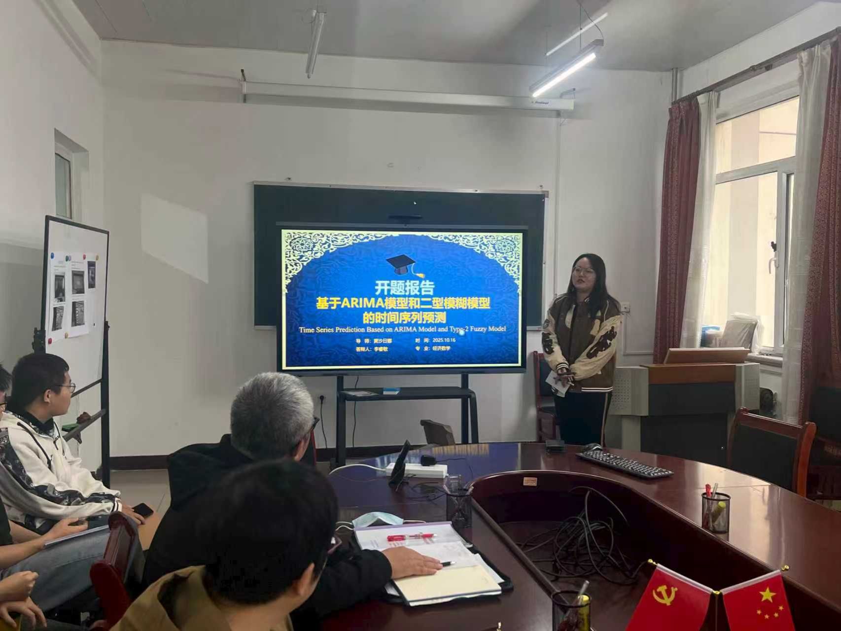 随后,李睿敏同学汇报了题为《基于ARIMA模型与二型模糊模型的时间序列预测》的开题报告,创新性地提出了融合ARIMA模型刻画线性趋势与二型模糊模型处理不确定性的混合预测框架,并通过跨模型参数联合优化进一步降低预测误差。