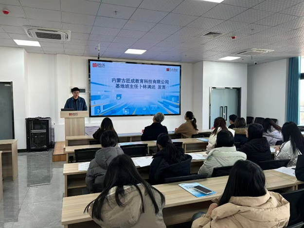 实习活动启动仪式由内蒙古匠成教育科技有限公司项目负责人主持,张军老师、赵真老师,企业北方区总经理赵静、基地班主任卜林满达、实训工程师林文军及全体实习学生参加。仪式上,项目负责人首先对同学们的到来表示热烈欢迎,详细介绍了五天实习实训的具体内容与安排,然后校企双方明确了实习纪律与核心要求,为实习顺利开展奠定了基础。