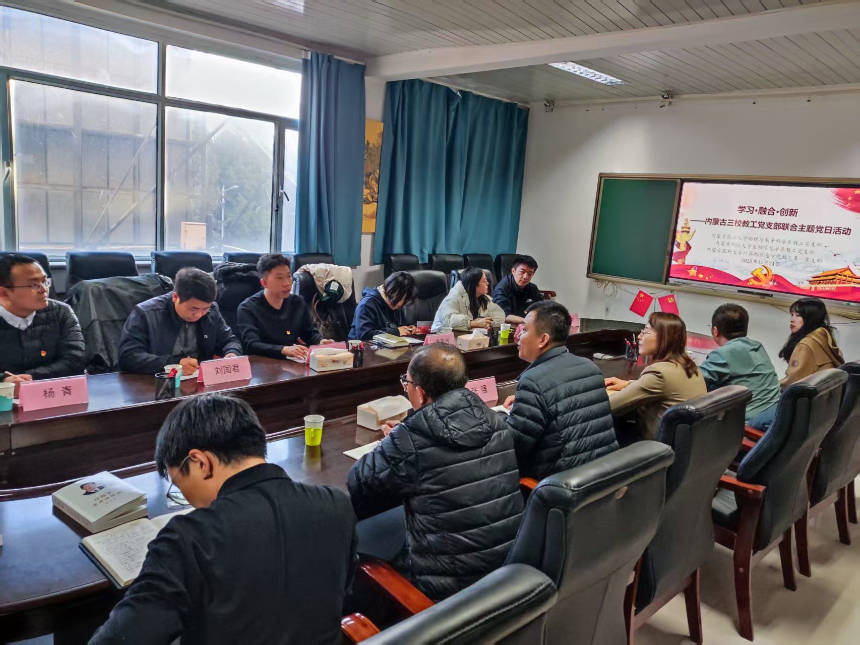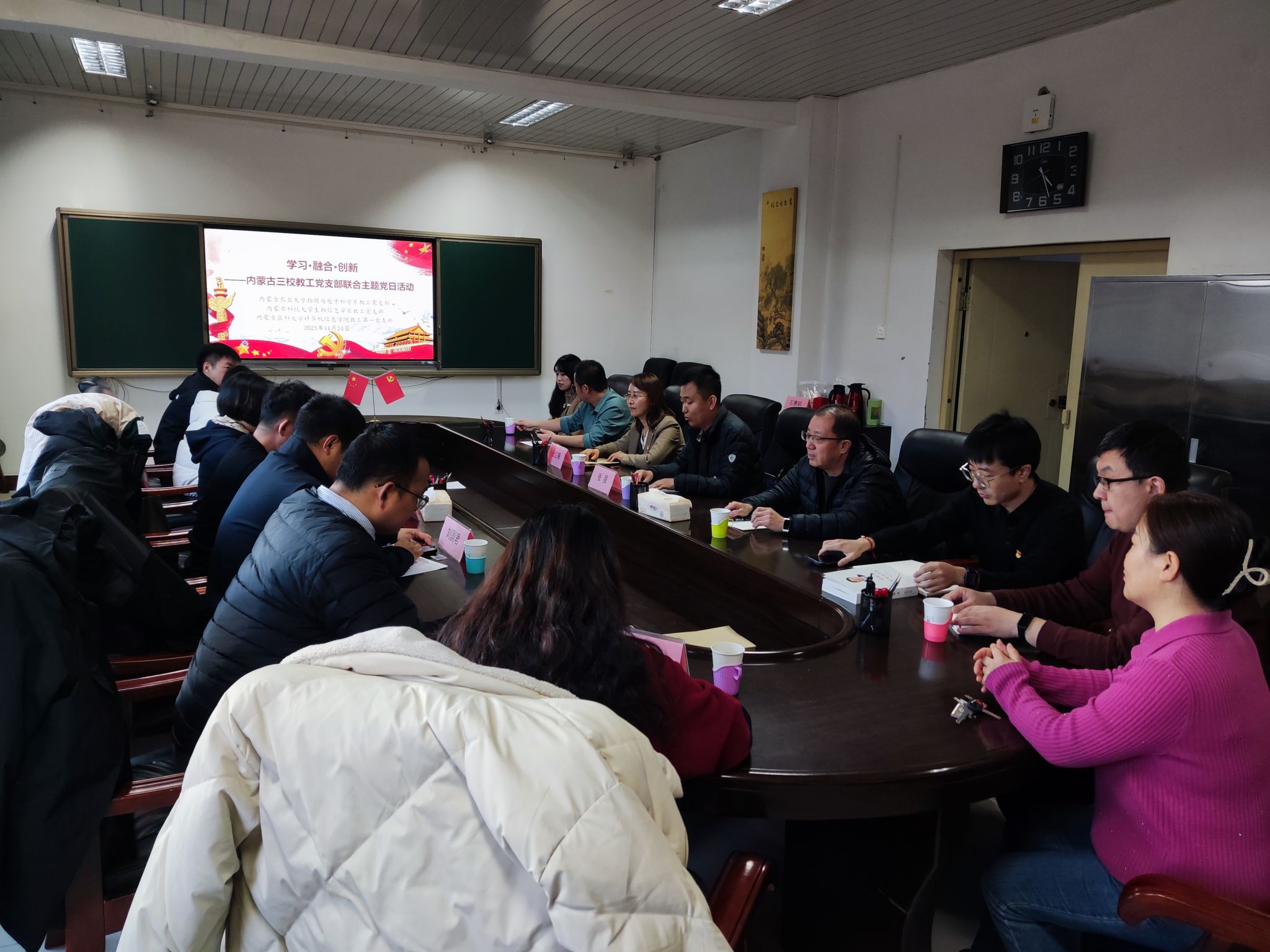 为深入学习贯彻习近平新时代中国特色社会主义思想,推动党建与业务工作深度融合,11月24日,由内蒙古农业大学理学院物理与电子科学系教工党支部、内蒙古科技大学生物信息学系教工党支部、内蒙古医科大学计算机信息学院教工第一党支部联合举办的“学习·融合· 创新”主题党日活动在内蒙古农业大学理学院229会议室顺利举行。