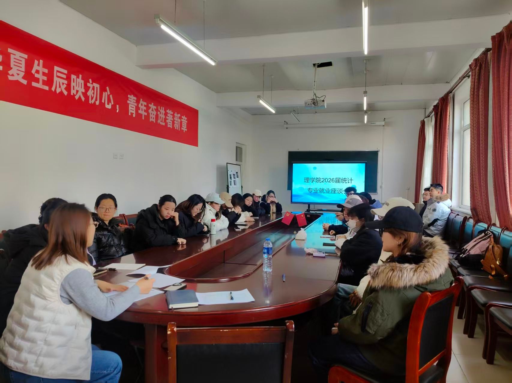 为切实推进2026届毕业生就业指导与服务工作,引导学生明晰职业规划、把握就业机遇,11月28日上午,理学院在学院212会议室成功召开了2026届统计专业毕业生就业座谈会。理学院党委副书记张红梅、学办负责人包乌云以及2026届统计专业全体学生参加了本次座谈。