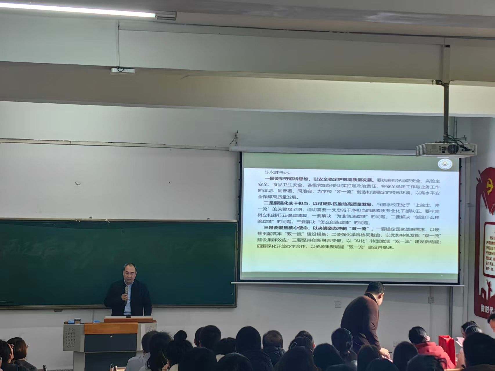 会议号召,全体教职工要迅速把思想和行动统一到学校党委和行政的决策部署上来,以更加饱满的热情、更加务实的作风、更加有力的举措,全面落实各项工作任务,为学校“冲一流”建设和学院高质量发展贡献智慧和力量。