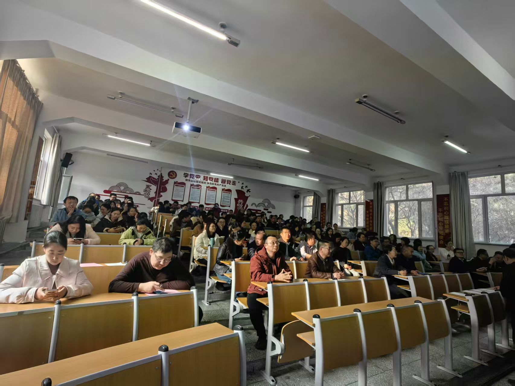 3月12日下午,理学院在101教室召开2026年春季学期开学全体教职工大会,传达学习学校“双一流”创建战略部署,部署学院年度重点工作,并对学生安全稳定、日常管理提出明确要求。学院党政领导班子及全体教职工参会,会议由院党委书记乌力吉主持。