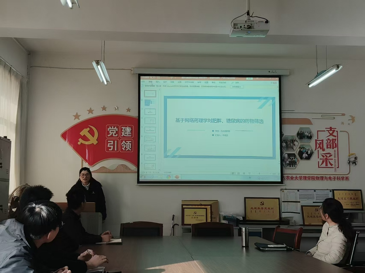 首先,牛晓玉同学基于网络药理学框架,针对肥胖合并糖尿病构建了“药物靶点-关键基因-核心通路-信号流模拟”的多层次分析体系。通过整合药物活性成分与疾病靶点的交互网络,锁定了关键的基因-药物调控轴,明确了其在特定信号通路中的富集特征,进一步利用药物信号流模拟动态解析了药物干预在生物网络中的传导路径与扰动效应。系统性地揭示了药物“多成分-多靶点-多通路”的协同调控机制,为肥胖合并糖尿病的药物筛选提供了可靠的候选依据与理论支撑。